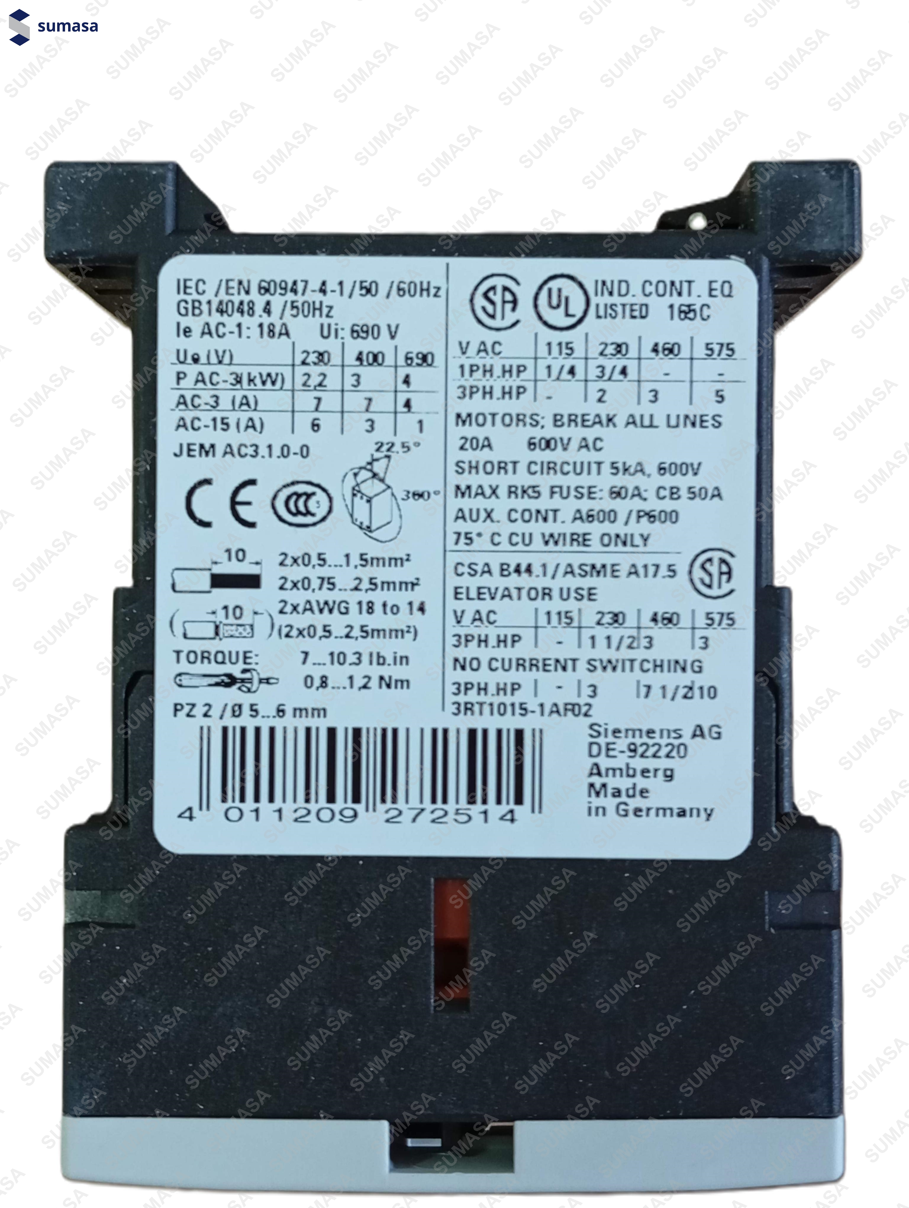 Información sobre el producto "OTIS CONTACTOR SIRIUS 3RT1015-1AF02"